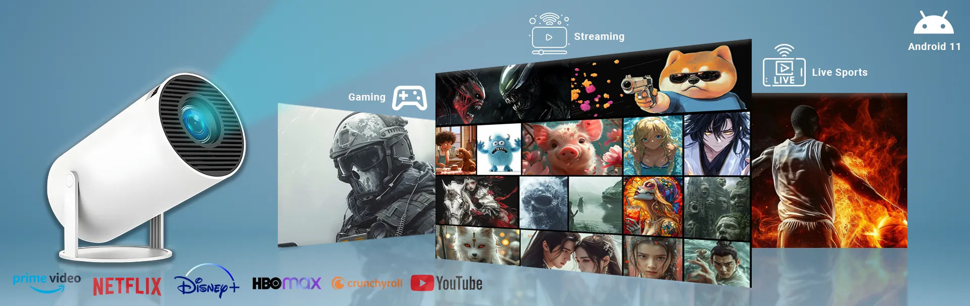 Say goodbye to blurry visuals - our android smart projectors offers top-notch, eye-popping images in 1080p Full HD & 720p HD quality.