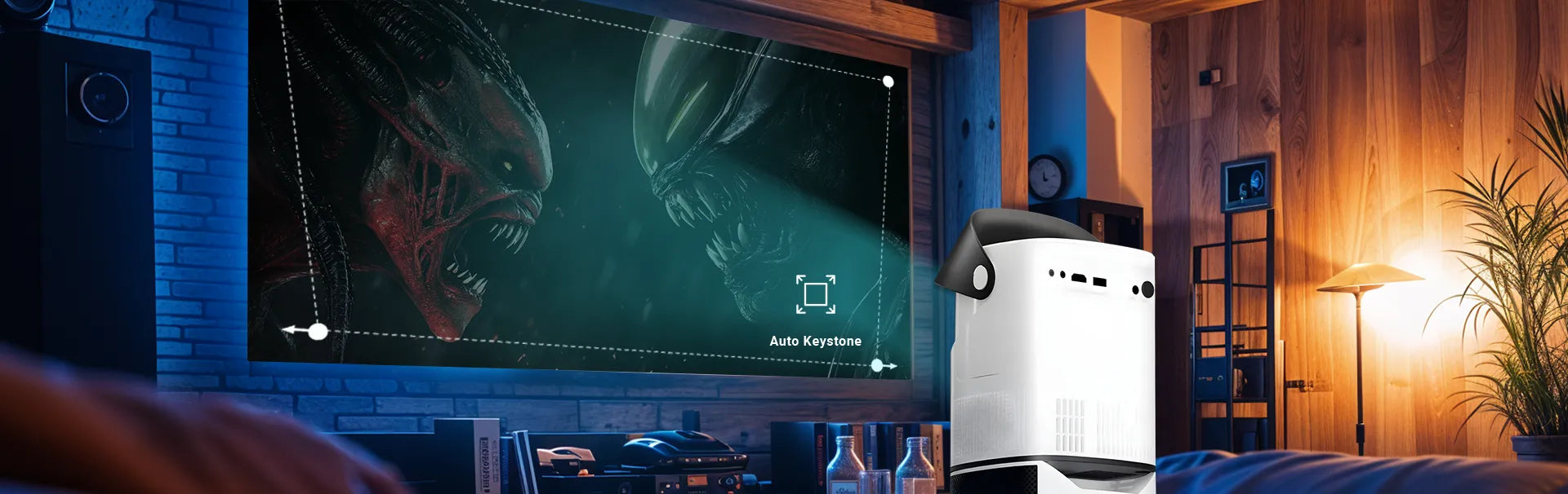 ⚡️【Auto Keystone Correction & 4P Correction】The Ayisa Smart projector features automatic keystone correction and 4P correction functions, ensuring a perfectly aligned image whether placed horizontally or at an angle.