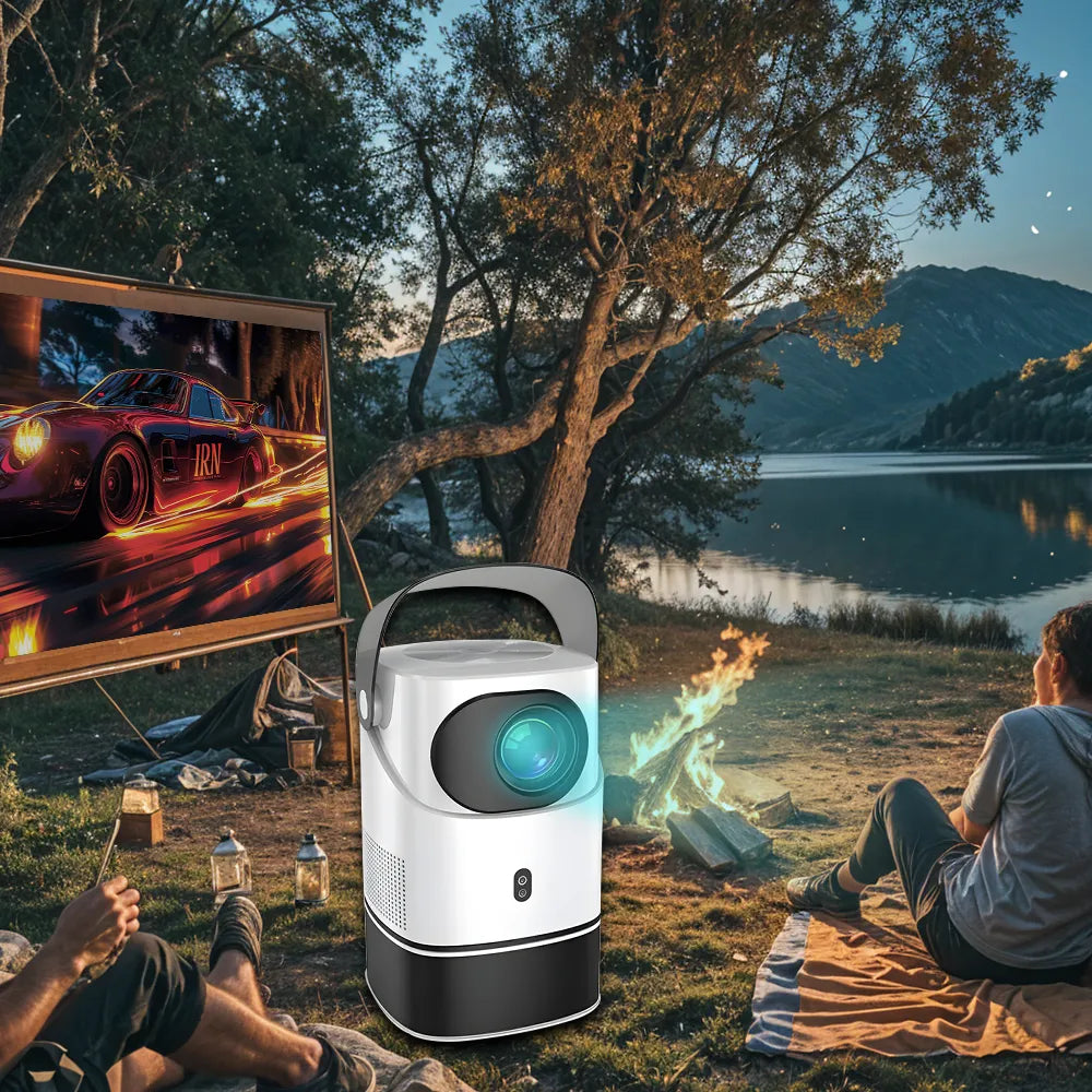 Enjoy a breathtaking outdoor movie experience with the Ayisa Projector, perfect for camping trips and lakeside gatherings with friends.