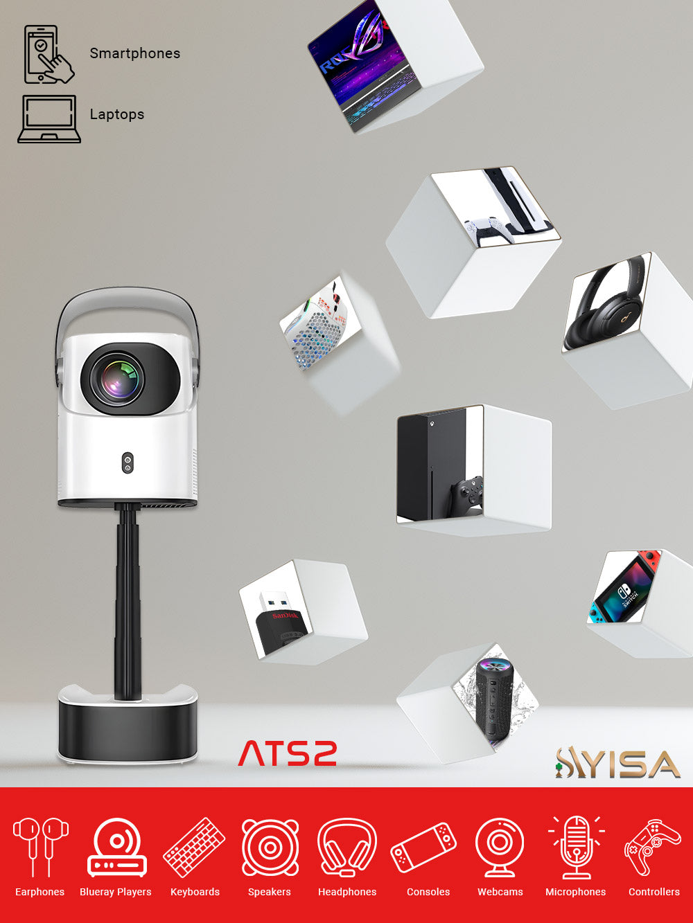 ⚡️【Bluetooth 5.2 & Built-in HiFi Speaker】With the Ayisa ATS2, Enjoy high-quality sound without the hassle of wires. The built-in HiFi speakers provide cinema-quality sound, allowing you and your family to create a home theater experience anywhere, anytime. Additionally, with Bluetooth 5.2 connectivity, the projector easily pairs with wireless speakers, headphones, or soundbars, delivering enhanced audio quality for a more immersive viewing experience.