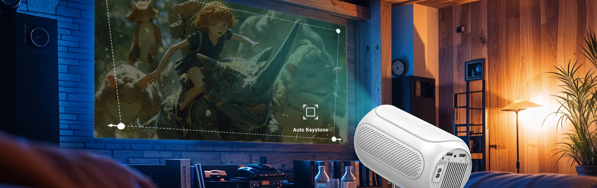 This projector features auto keystone correction technology to eliminate distorted images, ensuring a perfect picture.